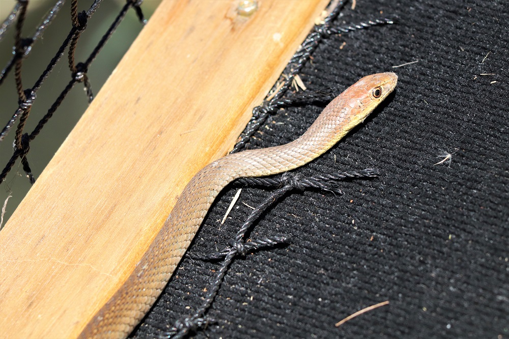 A harmless brown water snake had decided to make itself at home on the lower deck (above).