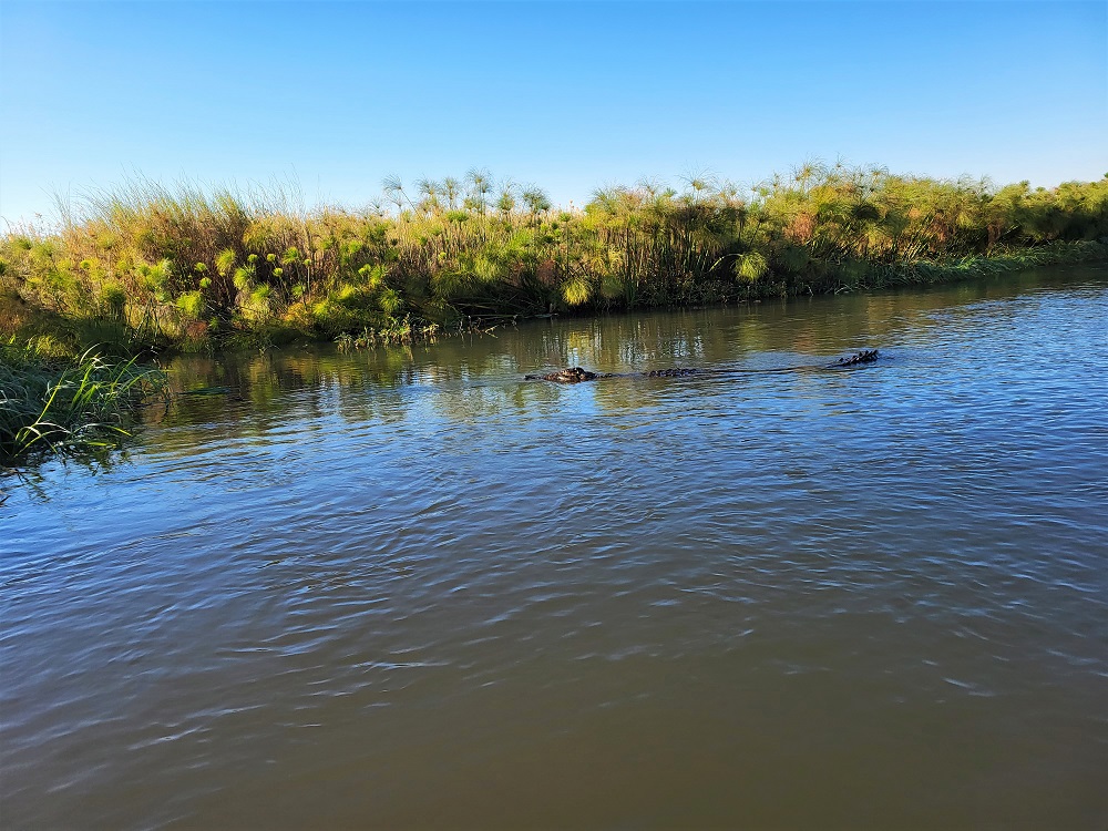 Cruising the river, we were never quite sure what we were going to see emerging from the rustling papyrus reeds or the inky black depths of the water.
