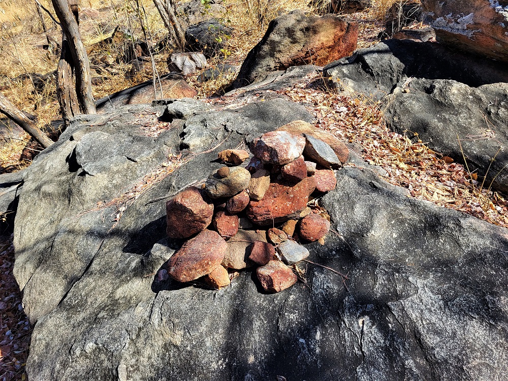 We continued our hike to the top of the hill, stopping part way to find a pretty stone to lay as an offering to our ancestors to make sure we had a safe journey over the hill (above).